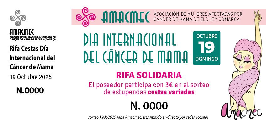 En conmemoración del 19 de octubre – DÃa Internacional contra el Cáncer de Mama, nuestra asociación organiza una rifa muy especial.